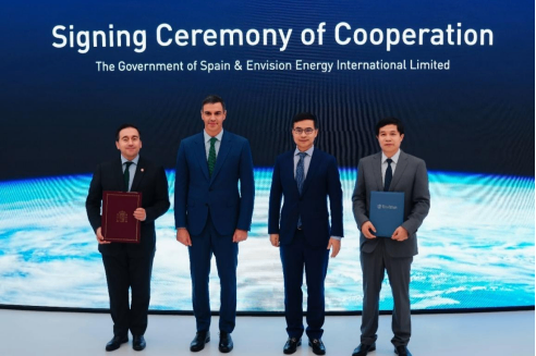 10日下午,西班牙政府与远景进行重大签约。根据合作协议,远景将在西班牙建设氢能装备工厂,布局绿氢产业链,并和西班牙企业一起打造零碳氢能产业园,实现100%绿电制氢。远景还将与西班牙在合成生物、绿色甲醇、可持续生物航油等领域进行全面合作,打造绿氢工业新生态,以具有成本竞争力的产品支持西班牙在工业、航空、航海等领域的零碳转型。